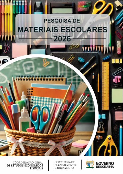 A Pesquisa de Materiais Escolares 2026, da SEPLAN/RR, apontou predominância de altas de preços em Boa Vista na comparação com 2025. Na papelaria, os preços oscilaram, com destaque para o aumento do caderno de 12 matérias (+15,8%) e queda do caderno de 1 matéria brochura (-5,4%). Em escrita convencional, a alta foi mais disseminada, liderada pelo lápis preto nº 02 (+43,8%) e pela borracha com suporte (+23,4%). Já em artes e criatividade, observaram-se aumentos expressivos, como a caneta hidrográfica (+35,0%) e o caderno de desenho (+33,2%), apesar da queda da massa de modelar (-9,6%). A pesquisa também revelou grande dispersão de preços entre estabelecimentos, reforçando a importância da comparação para economia das famílias